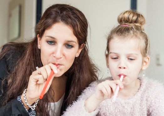 Mondademen is een gewoonte waarbij in rust de lippen niet gesloten zijn en er door de mond geademd wordt. Ouders zullen dit voornamelijk herkennen als hun kind slaapt. De open stand van de mond heeft gevolgen voor de kracht van de lipspieren en de filtering van de ingeademde lucht. Wanneer de lucht niet door de neus gefilterd wordt, ademt je kind alle bacteriën en virussen in die in de lucht hangen. Kinderen die door hun mond ademen, hebben ook een grotere kans op het ontwikkelen van cariës. Afwijkend slikken kan verschillende oorzaken hebben. Er is sprake van een afwijkende slik als de tong tegen of tussen de tanden en kiezen komt tijdens het slikken. Door de kracht van de tong op de tanden of kiezen kan een open beet ontstaan. Duimen, vingerzuigen en spenen kunnen ervoor zorgen dat de vorm van de mond er anders gaat uitzien en soms onderontwikkeld is. Dit is dan te zien aan het gebit of gehemelte. Door een duim, vinger of speen in de mond leert een kind zichzelf een verkeerde tong­positie aan. De kans is aanwezig dat de mondmotoriek slap wordt, je kind een verkeerde slik aanleert en gaat slissen. In de praktijk kunnen we werken aan het afleren van de verkeerde gewoonten. Daarnaast gaan we met spierversterkende oefe­ningen aan de slag om de mondmotoriek weer in balans te brengen.
